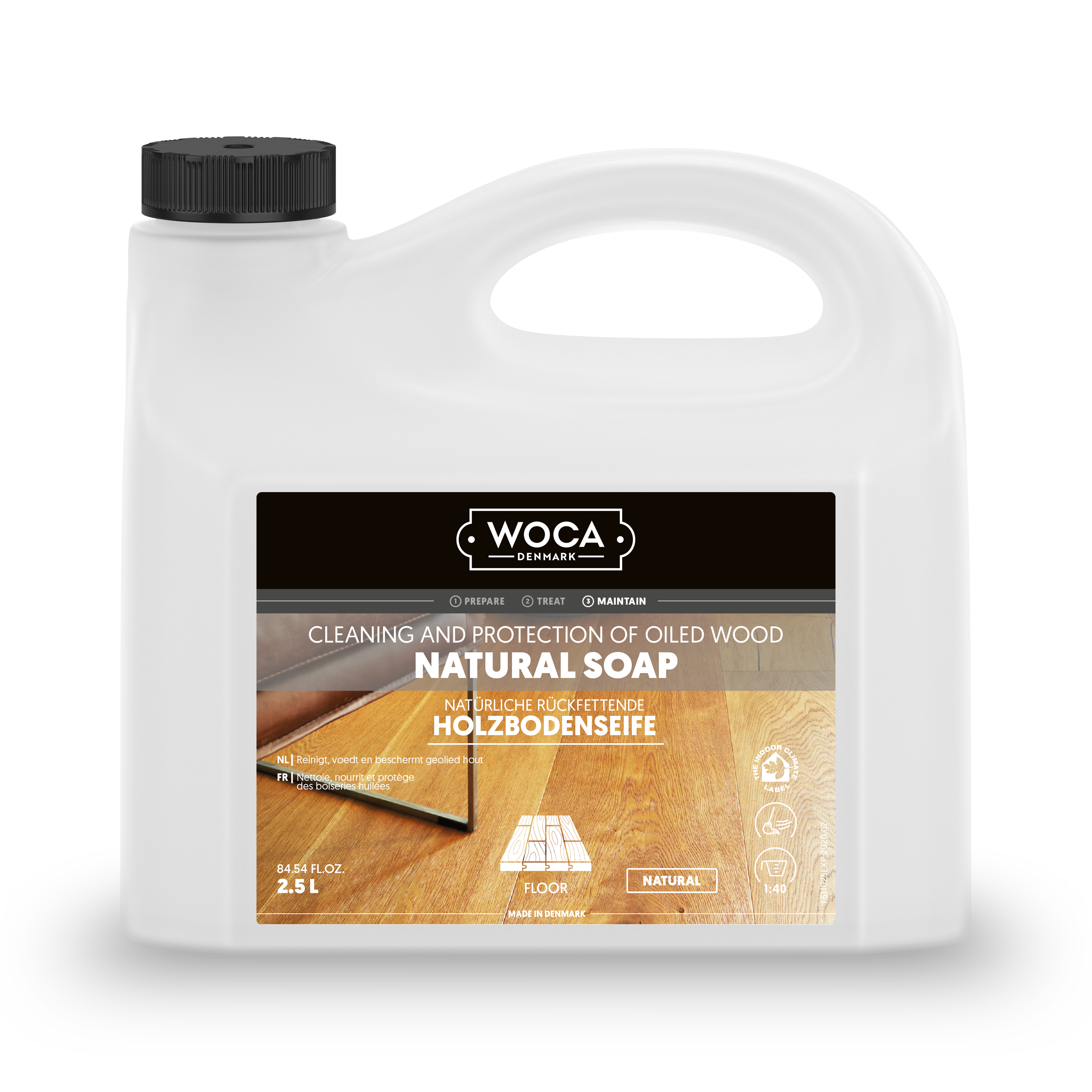 Woca Holzbodenseife ist die ideale Reinigung und Pflege für alle geölten, gewachsten und geseiften Holzoberflächen. Besonders für Fußböden, Möbel, Paneele und Arbeitsplatten, etc. geeignet.